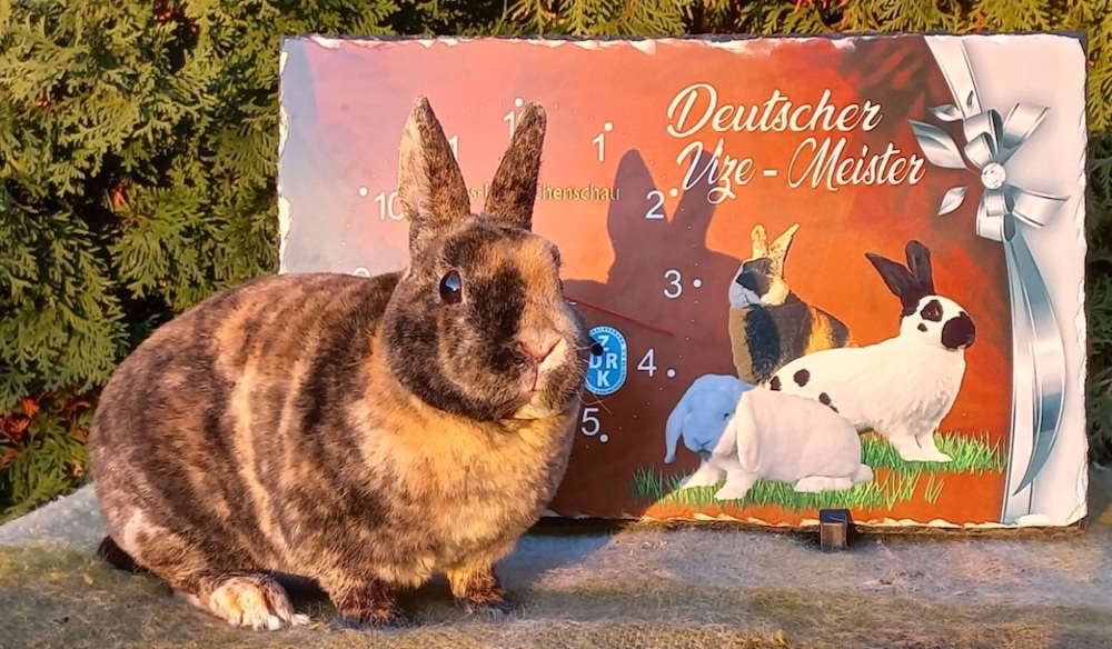 Die Züchterin Lara Liebing präsentierte insgesamt 18 Kaninchen aus fünf verschiedenen Rassen. Darunter waren acht Satinkaninchen in Röhnfarbig, von denen fünf die Bewertung „sehr gut“ erhielten; für ihre starke Sammlung wurde sie mit einem Sachpreis ausgezeichnet. Außerdem stellte sie vier blaue Zwergrexe aus, die ein Sammlungsergebnis von 381 Punkten erreichten. Mit ihren Zwergrexen Japanerfarbigen erzielte sie ein beeindruckendes Ergebnis von 382 Punkten – besonders bemerkenswert, da diese Rasse sehr selten ist. Dank dieses Ergebnisses wurde sie Deutsche Vizemeisterin.