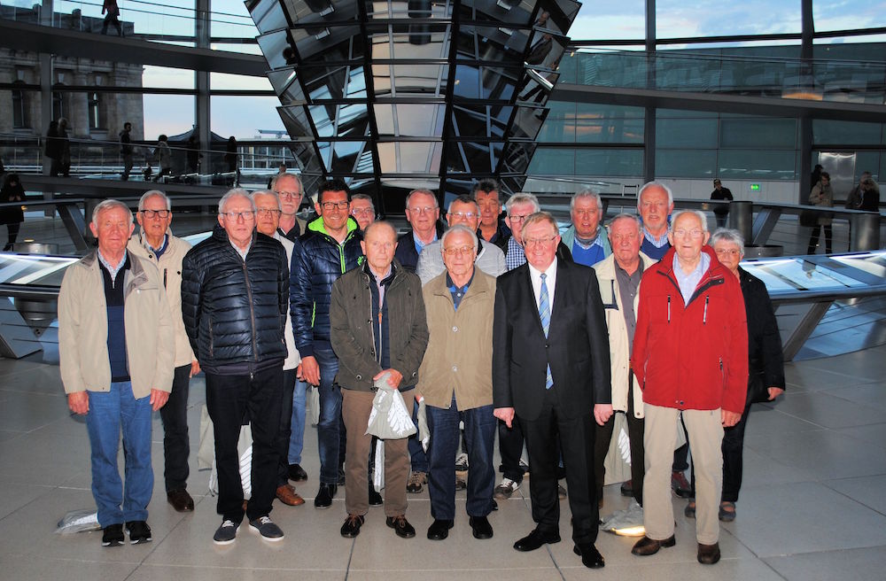 Berlin/Warendorf. Ganz besonders freute sich der heimische Bundestagsabgeordnete Reinhold Sendker jetzt über den Besuch der Ehrenabteilung der Warendorfer Feuerwahr in Berlin. Für drei Tage waren 16 Mitglieder unter der Leitung von Hans Heinrich Lau in der Bundeshauptstadt unterwegs und erlebten dort ein vielfältiges Besuchsprogramm. Eine Führung durch das Bundeskanzleramt war dabei mit Sicherheit eines der absoluten Highlights. Die Kanzlerin jedoch traf man bei diesem Besuch leider nicht an. Die war an diesem Tag bereits auf dem Weg zu ihrem US-amerikanischen Amtskollegen Donald Trump. Beneiden tat sie um diese Reise wohl kaum jemand. Weitere Höhepunkte waren die Teilnahme an einer Live-Sendung des ZDF-Frühstücksfernsehens MoMa, eine Führung durch die Gedenkstätte Hohenschönhausen und natürlich der Besuch einer Plenarsitzung des Deutschen Bundestages samt anschließendem Gespräch mit Reinhold Sendker. Dabei dankte der Westkirchener der Ehrenabteilung ganz herzlich für ihr jahrelanges freiwilliges Engagement: „Das Ehrenamt ist eine große Stütze unserer Gesellschaft und aus dieser nicht mehr wegzudenken“. Er habe der Ehrenabteilung mit dieser Einladung seine Anerkennung zum Ausdruck bringen wollen und freute sich daher sehr, dass das Programm auf eine solch positive Resonanz stieß. Es folgte eine breite Diskussion über die Verkehrsinfrastruktur des Kreises Warendorf sowie den Breitbandausbau. Auf diesen Themen läge ein großer Fokus seiner Arbeit, erläuterte der CDU-Abgeordnete seinen Gästen, denn eines seiner großen Ziele sei es, den Standort Kreis Warendorf wettbewerbsfähig zu erhalten. Dafür seien sowohl ein sicheres und gut ausgebautes Verkehrsnetz als auch schnelles Internet zwei ganz wesentliche Voraussetzungen.