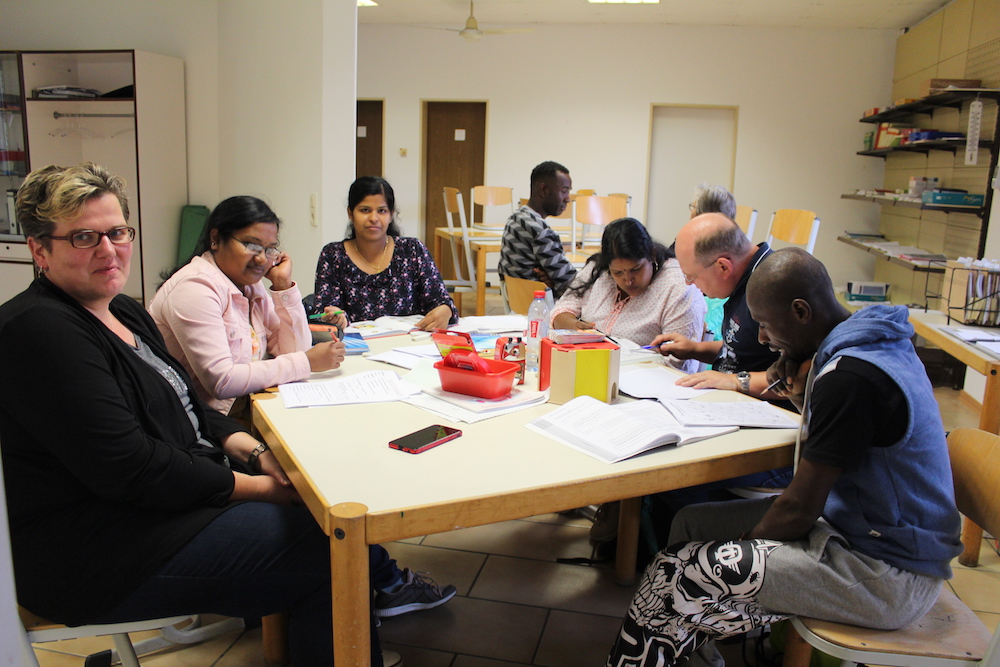 Unser Foto entstand bei einer Unterrichtsstunde im Sprachraum Hof Hövener, Warendorfer Straße 10. Arbeitsmaterialien sind dort in ausreichender Zahl vorhanden.
