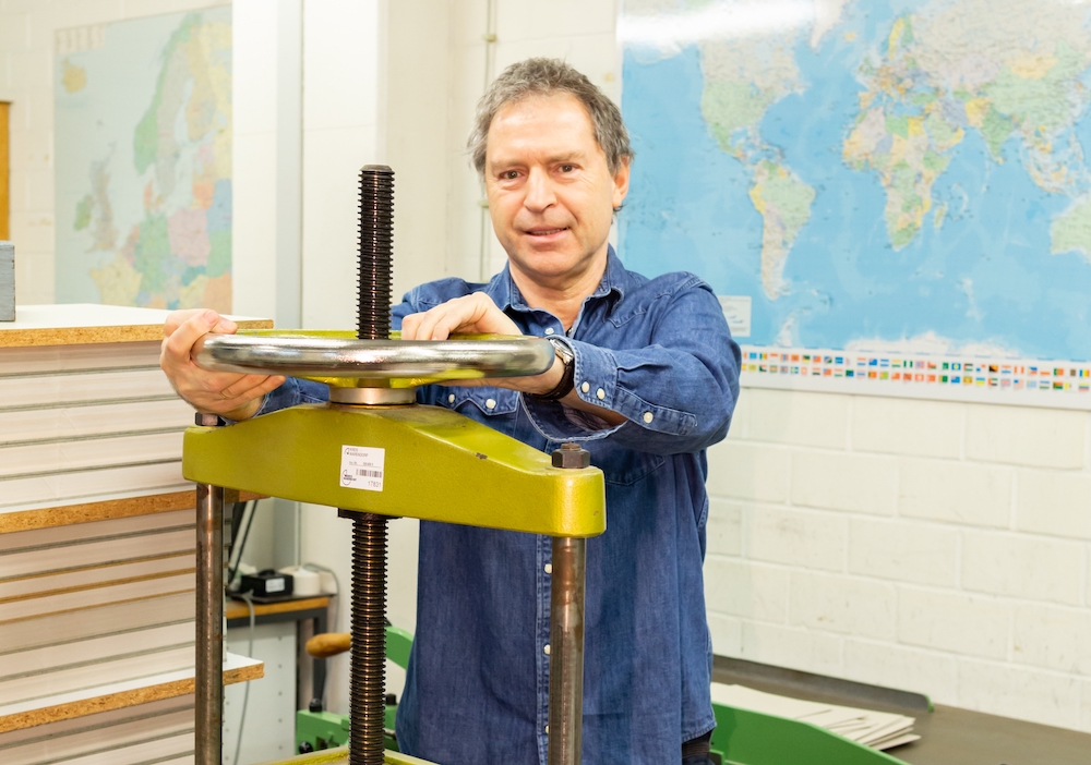Die Arbeit in der Kreisverwaltung ist vielseitig: Neben Verwaltungsbeamten sind beim Kreis Warendorf auch Rettungssanitäter, Feuerwehrleute oder Vermessungsingenieure tätig. Kaum bekannt ist, dass es im Kreishaus auch einen Buchbinder gibt. Schon seit 1984 klebt, presst, prägt und repariert Klaus Zurwieden im Dienste der Öffentlichkeit.