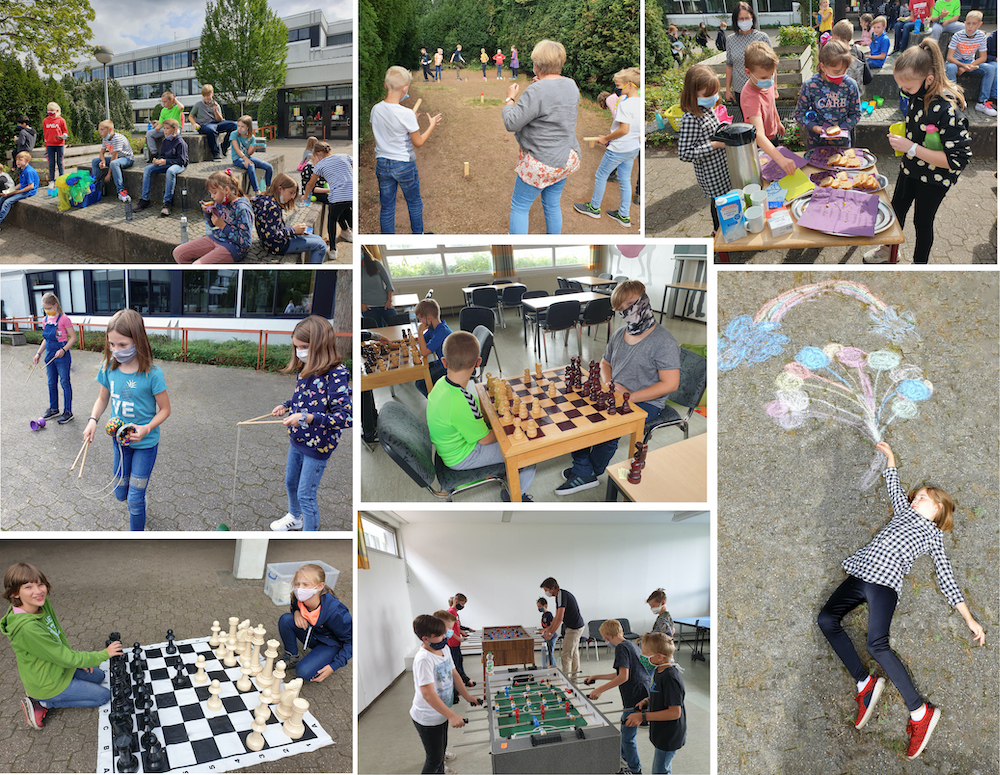 Den zweiten Donnerstagnachmittag verbrachten die Schülerinnen und Schüler bei einem Spielenachmittag in der Schule, bei dem sie aus unterschiedlichen Aktivitäten auswählen konnten. Das Wetter spielte mit, so dass die meisten Ideen draußen umgesetzt werden konnten. Auch für das leibliche Wohl war gesorgt.