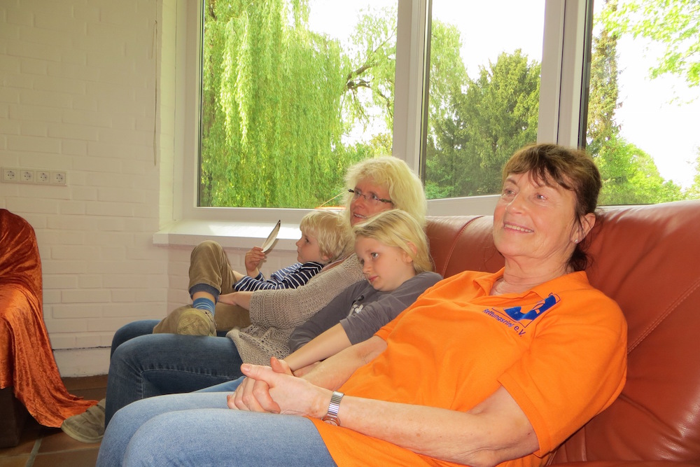 Die mitgebrachten Kinder erlebten einen spannenden Nachmittag bei einer GPS-unterstützten Schatzsuche um den Emssee und auf dem Piratenspielplatz. „Eine ganz schöne Herausforderung mit Kindern von 0 -10 Jahren und zwei Kinderwagen“, grinsten die beiden Betreuerinnen, aber alle hatten offensichtlich Spass bei dem sommerlichen Wetter und kamen völlig erledigt am Abend zurück.