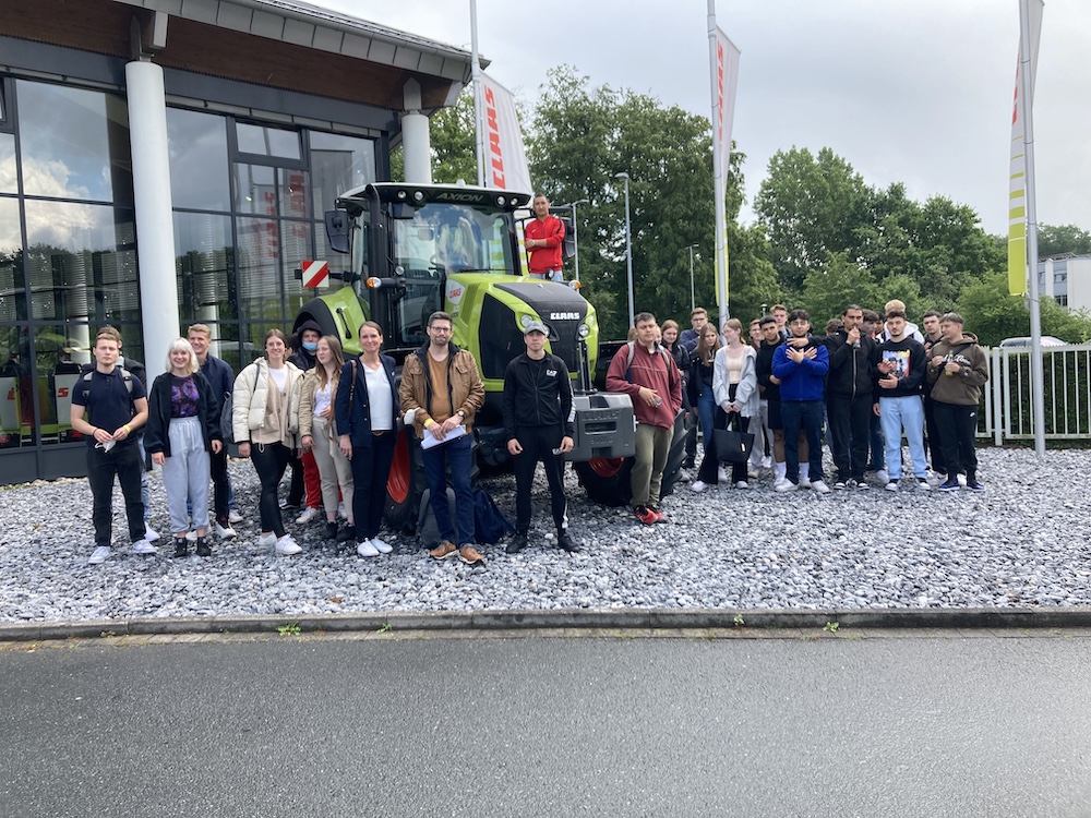 Erste Einblicke erhalten. Die eigene berufliche Zukunft planen. Chancen nutzen. Diese Möglichkeiten nahmen zwei Unterstufenklassen der Höheren Berufsfachschule für Wirtschaft und Verwaltung des Paul-Spiegel-Berufskollegs in Warendorf wahr. Gemeinsam mit ihren LehrerInnen Tanja Drabe und André Schulte ging es nach Harsewinkel zum CLAAS Newcomers‘ Day, den das Familienunternehmen nach langer Coronapause endlich wieder vor Ort ausrichten konnten.