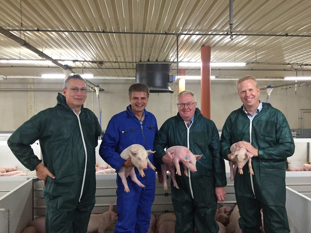 (Foto: Bundestagsbüro Reinhold Sendker MdB) Unser Foto zeigt Reinhold Sendker beim Besuch des sauenhaltenden Betriebes Hof Wißling in Beckum im September: (v.l.) Rudolf Borghoff (Landwirtschaftskammer), Egbert Wißling, Reinhold Sendker MdB und Henning Rehbaum MdL