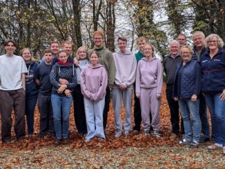Der 12. Jahrgang des Beruflichen Gymnasiums im St. Rochus-Hospital, zusammen mit Klassenlehrerin Gisela Mersmann (3.v.l.) und den Mitarbeitenden des Hospitals
