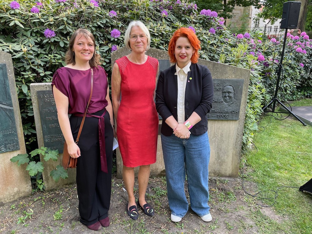 Bürgermeister Wolfgang Pieper begrüßte die Gäste – unter ihnen auch Wolfgang Bruens, ein Nachfahre der Terfloth-Schwestern sowie der ehemalige Bürgermeister Ulrich Roeingh. Er bedankte sich bei allen, die sich für die Sichtbarmachung der Frauen eingesetzt haben, die Geschichte geschrieben haben, aber oft nicht wahrgenommen wurden. Pieper: „Männer haben eine eingeschränkte Sicht, wir weiten jetzt unseren Blick.“ Die Stele unter der Weide beim Christoph-Bernsmeyer-Haus sei dezent und ins Auge fallend zu gleich.