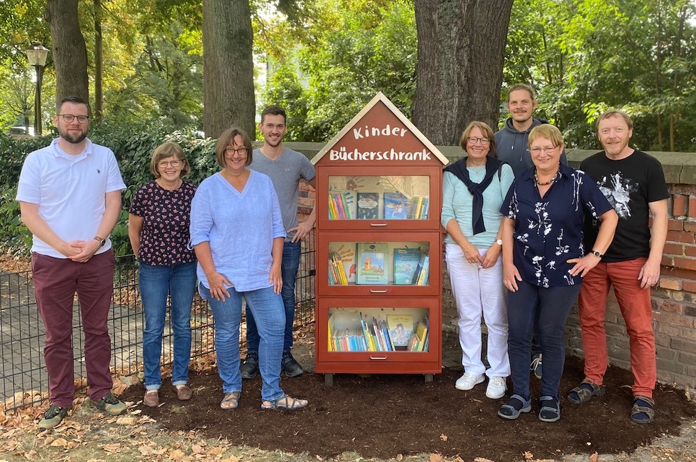 Besonderer Dank gilt Frau Beate Osthues von der Aktion Kleiner Prinz, die den Bücherschrank mit einer sehr schönen Erstausstattung an Bilderbüchern und Lesestoff versorgt hat. Gebaut wurde der Schrank von der Firma Kantholz aus Warendorf, so dass durch die Förderung auch das lokale Handwerk unterstützt wurde.