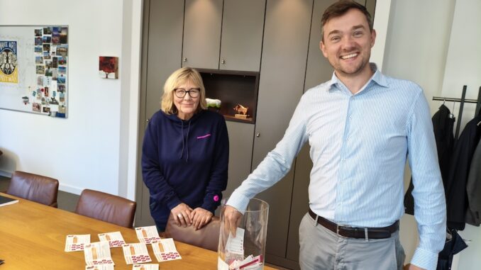Warendorfs Bürgermeister Peter Horstmann hat die ersten Gewinnerinnen und Gewinner der Aktion „Baustellenpunkte“ gezogen. Insgesamt wurden 15 Gutscheine für ein exklusives Frühstück im Riesenrad verlost. Jede Gewinnerin und jeder Gewinner darf bis zu drei Begleitpersonen mitbringen. Das besondere Erlebnis findet am Sonntag, 19. Oktober 2025, im Rahmen der Fettmarkt-Kirmes in Warendorf statt.