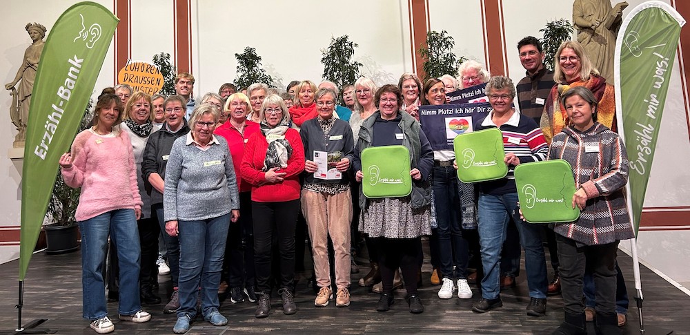 Das Thema Einsamkeit betrifft inzwischen nicht mehr nur ältere Menschen. Leider ist es zu einem gesamtgesellschaftlichen Phänomen geworden, dem in verschiedenen Städten mit Erzählbänken begegnet wird. Die Erzählbänke bieten Gelegenheit zum ungezwungenen Austausch. Die Zuhörenden sind in der Regel durch Sitzkissen oder Banner auf oder neben der Bank gut zu erkennen. Sie schenken jedem, der sich auf die Bank setzt, gerne ihr Ohr.