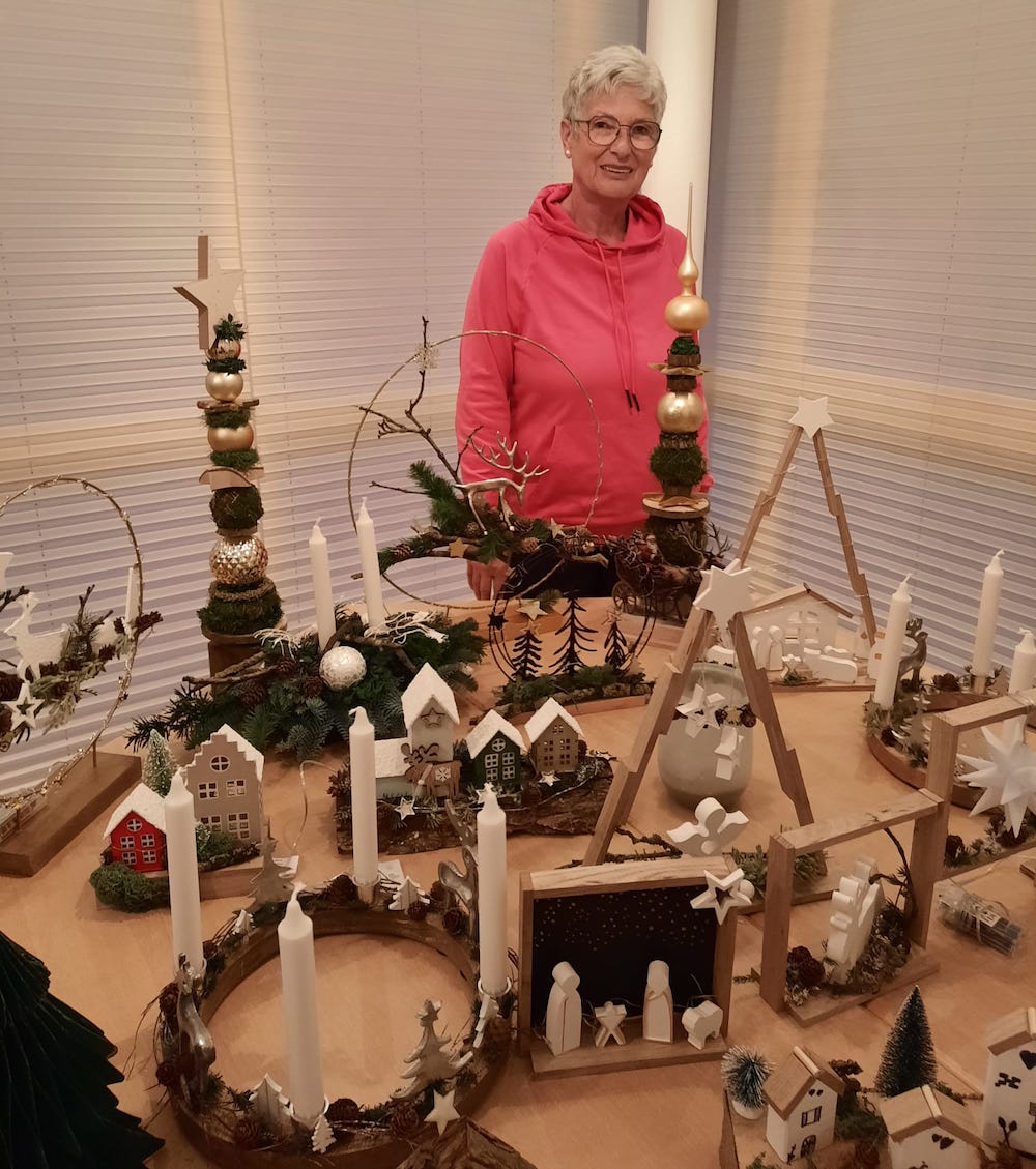 Marion Arnemann zeigt eine kleine Auswahl zum reichhaltigen Angebot des Weihnachtsbasar .