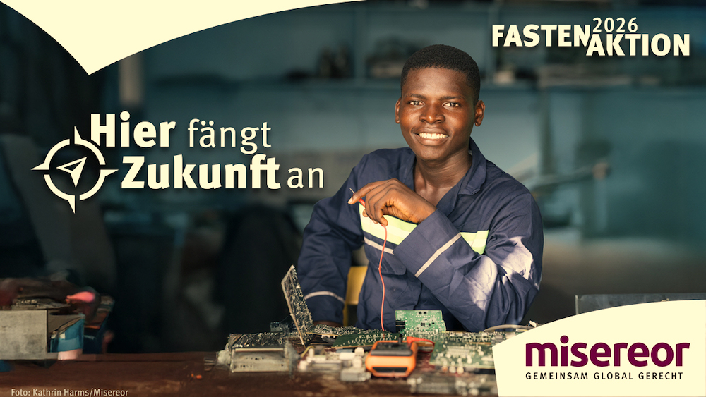 Unter dem Leitwort „Hier fängt Zukunft an“ stellt das Bischöfliche Hilfswerk MISEREOR das Thema Berufliche Bildung in den Mittelpunkt der Fastenaktion2026. Berufliche Bildung verändert Leben, in Kamerun, dem diesjährigen Beispielland, und weltweit. Sie schafft Perspektiven, stärkt Selbstvertrauen und eröffnet Chancen für jede*n Einzelne*n und die Gesellschaft. Der MISEREOR-Projektpartner CODAS Caritas Douala unterstützt junge Menschen mit vielfältigen Angeboten dabei, ihren Weg zu gehen.