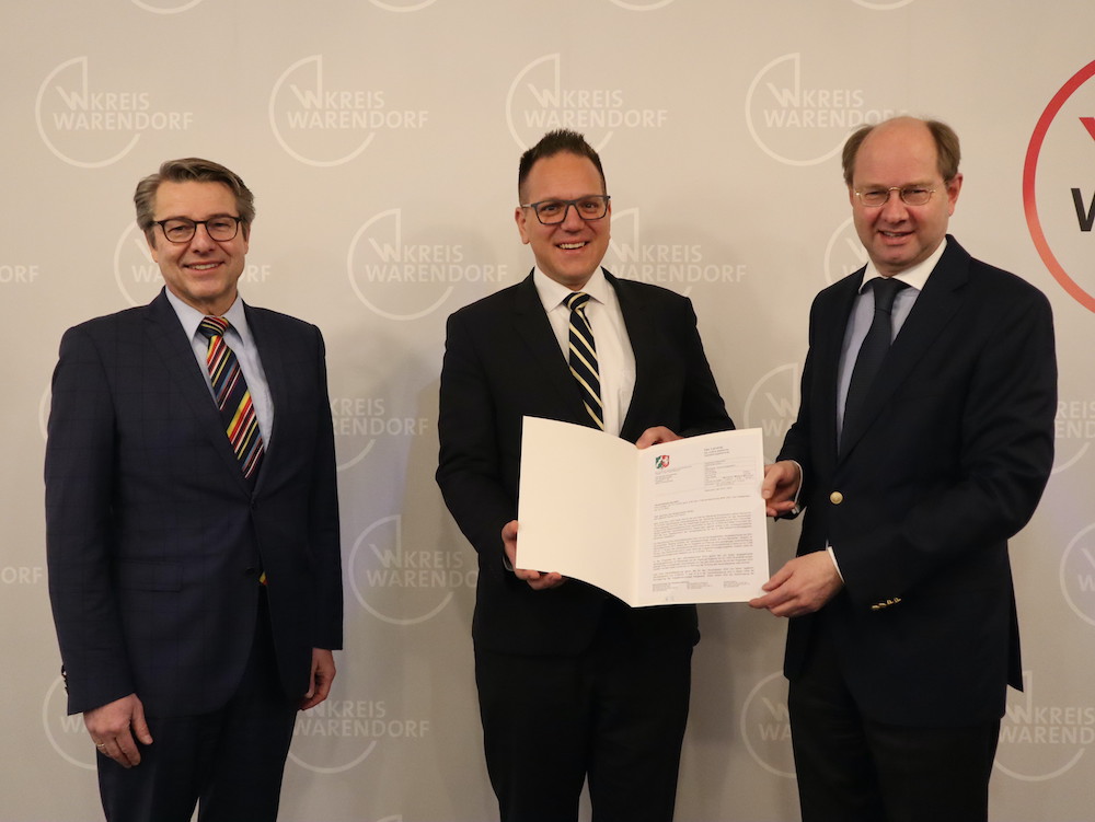 Landrat und Bürgermeister freuten sich über die schnelle und gute Zusammenarbeit der Verwaltungen, denn mit der vorliegenden Genehmigung können die geplanten Maßnahmen der Gemeinde Everswinkel jetzt umgesetzt werden.