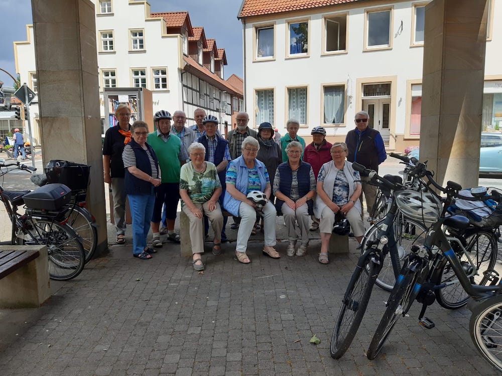 Am Mittwoch, den 7. Juli 2021 Uhr fand die erste Fahrradtour der Kolpingsfamilie Sassenberg im Jahre 2021 statt. An der Radtour nahmen 17 Personen teil. Wir haben uns über jeden einzelnen Teilnehmer gefreut. Nach einem Foto auf dem Mühlenplatz startete die Radtour pünktlich um 15.00 Uhr in Richtung Vinnenberg.