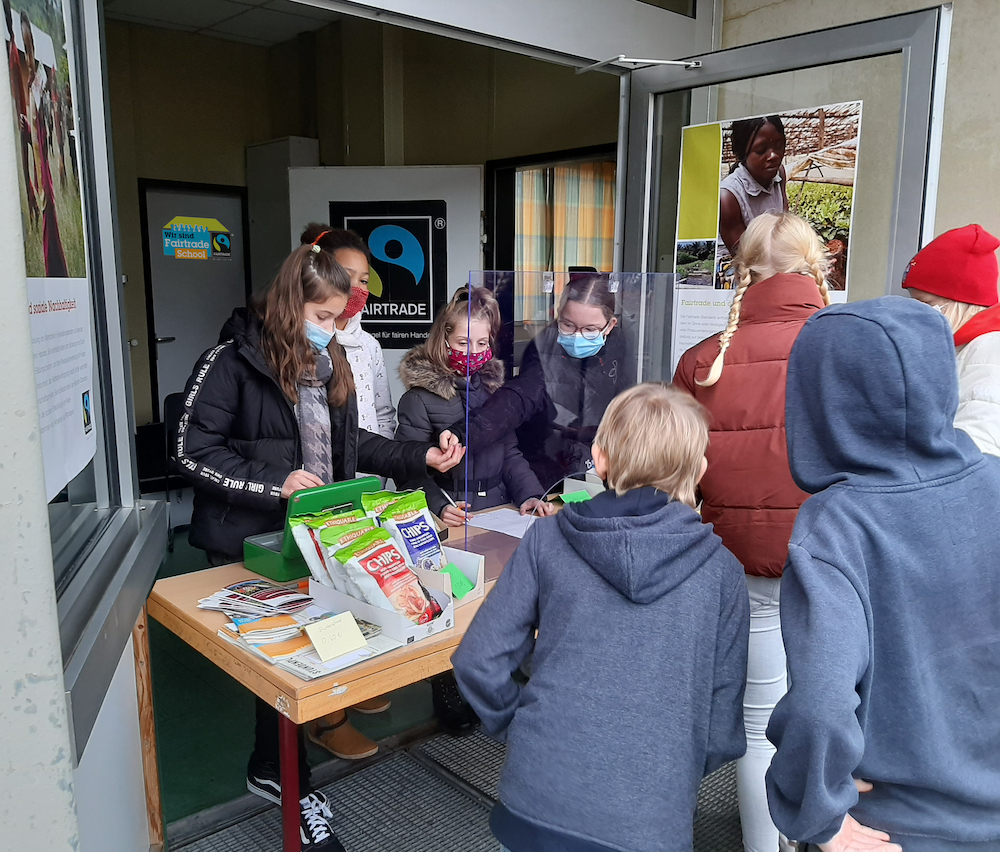Aufgrund von Corona wurde am vergangenen Freitag am Gymnasium Laurentianum der Fair Friday Verkauf ins Freie verlegt. Die Mode AG, die sich auch mit fair produzierter Kleidung beschäftigt, bereitete in ihren Räumlichkeiten den Verkauf vor und stellte die Verkaufstheke in die Eingangstür. In der 1. Großen Pause standen die Schülerinnen und Schüler der Schule geordnet und mit Abstand Schlange und ließen sich auch nicht von leichtem Nieselregen abhalten. Am Ende der Pause war der Laden ausverkauft. Die Arbeitsgemeinschaft freute sich über den Andrang und das Zeichen, das die Schülerschaft setzte: Gerade in diesen Zeiten benötigen die Produktionsländer mehr Unterstützung denn je.