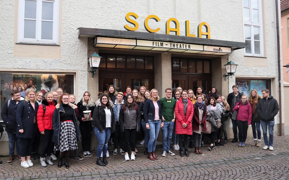 Die Leistungskurse Erziehungswissenschaften und die Lehrkräfte bedankten sich bei Kinobetreiber Johannes Austermann für die exklusive Vorführung des beeindruckenden Films.