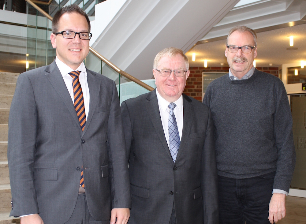 Regelmäßig hält der CDU-Bundestagsabgeordnete Reinhold Sendker Kontakt zu den Bürgermeistern der kreisangehörigen Städte und Gemeinden. So kam er gestern auch mit Bürgermeister Sebastian Seidel und dem Ratsherrn und CDU-Vorsitzenden Ludger Klaverkamp im Rathaus der Vitusgemeinde zusammen. Gute Nachrichten hatte er dabei aus Berlin im Gepäck. „Für das Jahr 2017 gibt es im Wege der Soforthilfe 1,5 Mrd. € für die Kommunen, rund 240.000 € erhält die Gemeinde Everswinkel“, so Sendker. Ab dem Jahr 2018 werde es das 5-Mrd.-Euro-Paket des Bundes geben, wobei auf Everswinkel rund 400.000 € entfalle. Sorgenvoll blickten der Bundestagsabgeordnete mit Bürgermeister Seidel und Ratsherr Klaverkamp darauf, dass 1 Mrd. € aus dem Paket über den Umsatzsteueranteil zunächst in die Landeshaushalte fließen. Geld, das für die Kommunen gedacht sei, müsse auch dort ankommen. „Die Integrationspauschale des Bundes von rund 233.000 € für Everswinkel befindet sich zur Zeit auch noch in Düsseldorf und muss dringend durchgereicht werden“, begründet Ratsherr Klaverkamp seine Skepsis.