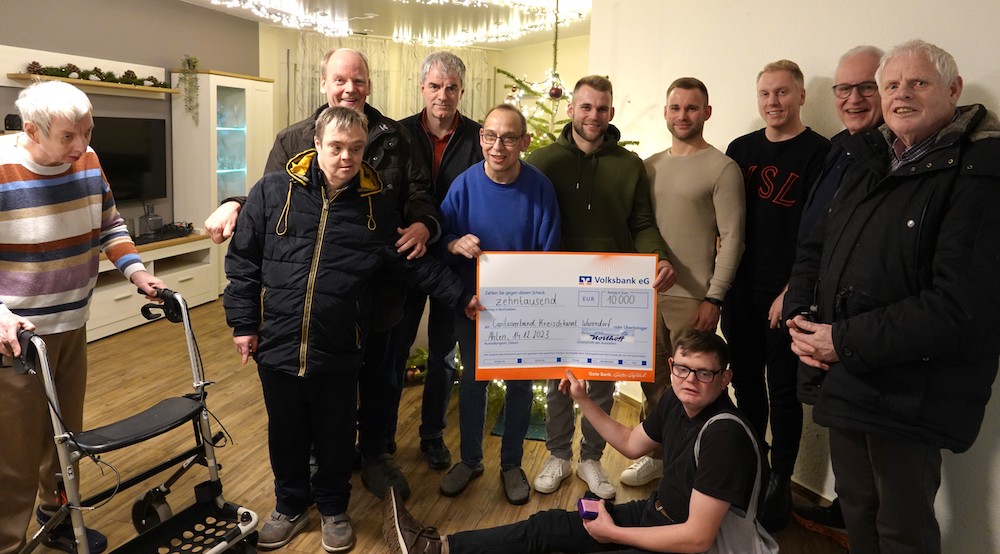 Da war die Freude vor Weihnachten im Christophorus-Haus in Ennigerloh groß: Christian, Kevin und Kai Northoff, die junge Generation der Firma Northoff aus Ahlen, überreichten eine Spende in Höhe von 10.000 Euro, die von den Bewohner*innen des Christophorus-Hauses stellvertretend für alle Wohneinrichtungen für Menschen mit einer Behinderung im Caritasverband im Kreisdekanat Warendorf e.V. in Empfang genommen wurde.