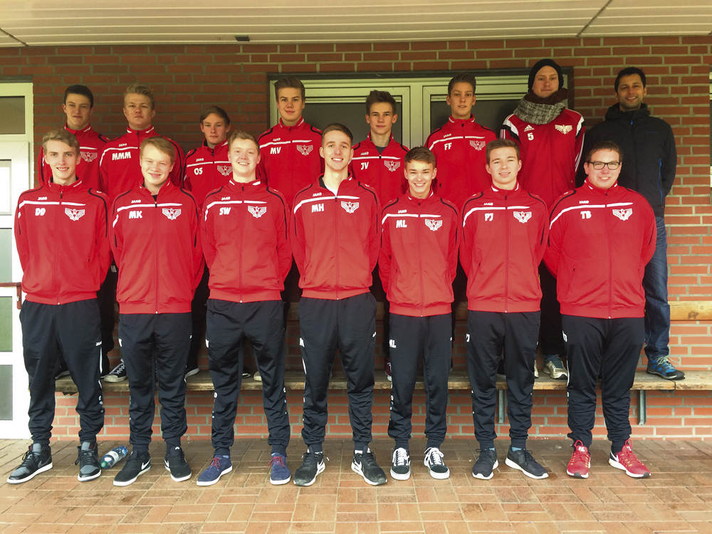 Milte. Rechtzeitig zum Rückrundenauftakt der Saison 2016 / 2017 konnten die A-Jugendfußballer der DJK Rot-Weiß Milte ihre neuen Trainingsanzüge in Empfang nehmen. Die Flora Apotheke der Familie Bikmohammadi unterstützte bei der Finanzierung und freute sich zugleich, die jungen Sportler neu einzukleiden. Der Vorstand der DJK sowie die Mannschaft um die Trainer Nils Wortmann und Tobias Borgmann bedankt sich auf diesem Wege nochmals ganz herzlich bei dem Sponsor und hofft erfolgreich in die anstehende Kreisligasaison zu starten – für eine extra Portion Motivation ist nun gesorgt.
