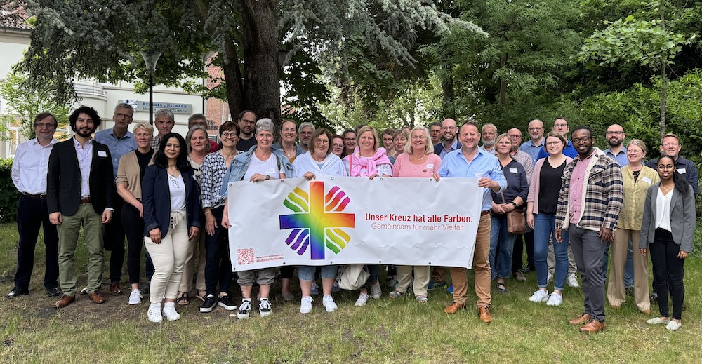 Die Leitungskräfte des Caritasverbandes im Kreisdekanat Warendorf e.V. kamen bei ihrer jährlichen Pfingsttagung zusammen und setzten ein Zeichen für Vielfalt und Demokratie und gegen Rechtsextremismus (Bild: Julia Kuhn).