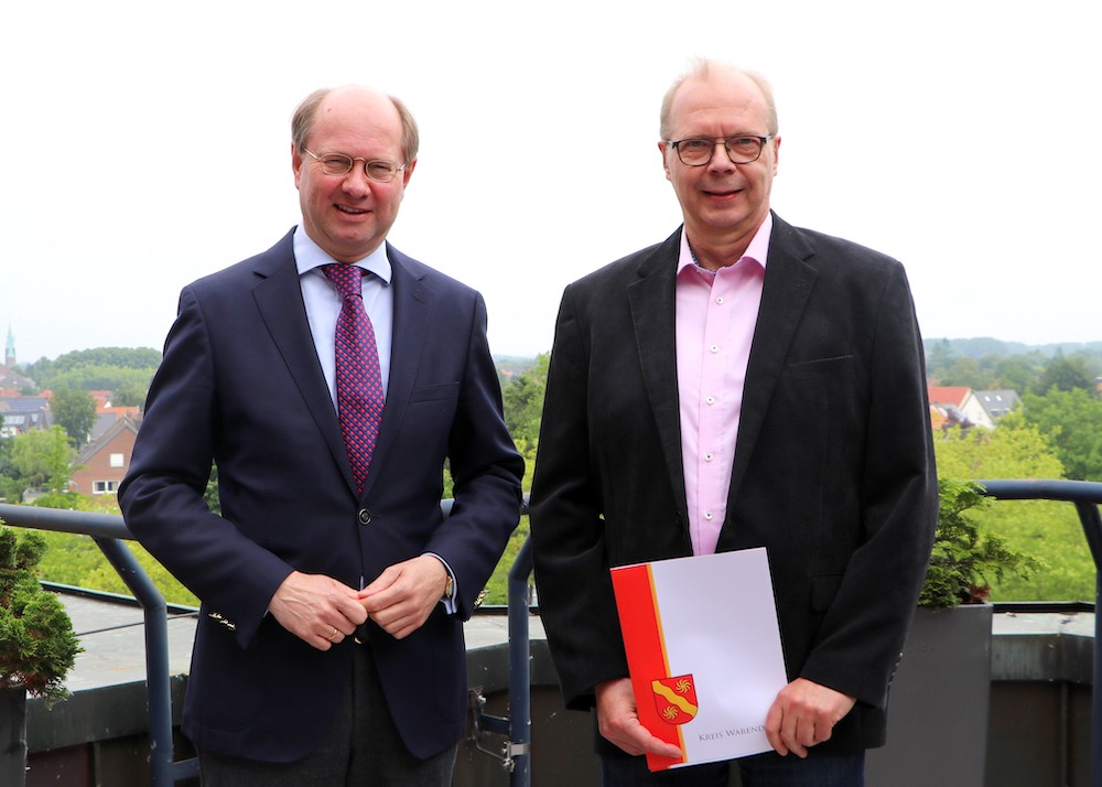 Für Klaus Kühne (r.) hat der Ruhestand begonnen. Landrat Dr. Olaf Gericke verabschiedete ihn aus dem Dienst bei der Kreisverwaltung. – Foto: Kreis Warendorf