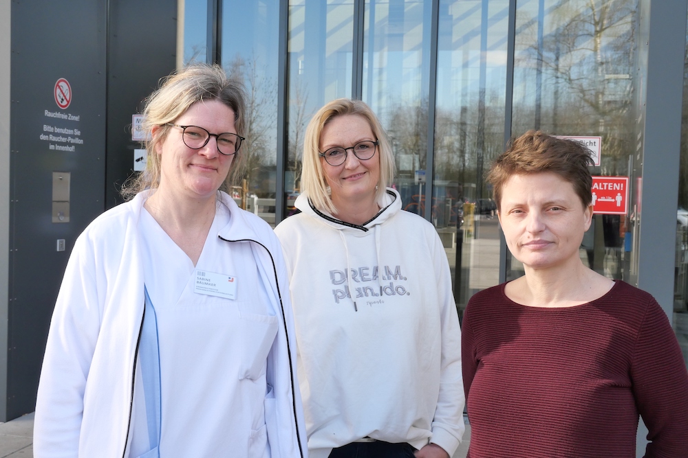 Sabine Bäumker, Sandra Wiggelinghoff und Silke Weber – drei Fachkräfte der Geriatrischen Pflege im Josephs-Hospital (v.li.)