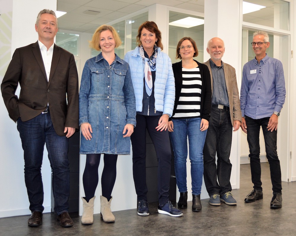 (v.l.n.r.): Martin Hanewinkel (Jobcenter, Sachgebietsleiter), Simone Grasemann (Jobcenter, Koordinatorin der Maßnahme), Andrea Elisa Roscher (DEULA Geschäftsleitung), Julia Neuhaus (DEULA Bildungsberatung), Peter Berding (Impulse e.V., Geschäftsführer), André Fuckner (Impulse e.V., Projektkoordinator)