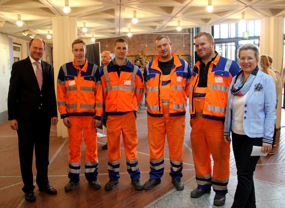 Auch die Straßenwärter des Kreises stellten ihren Beruf vor. Landrat Dr. Olaf Gericke (l.) und Personaldezernentin Petra Schreier freuten sich über die Unterstützung der Mitarbeiter beim Azubi-Info-Treff. – Fotos: Kreis Warendorf
