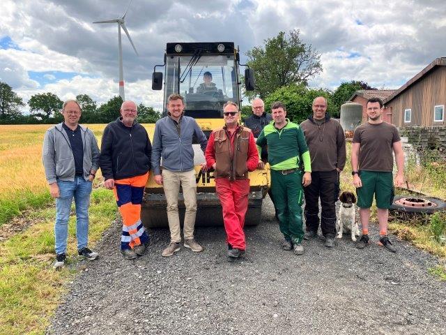 Andreas Steiling, Tiefbau Stadt Warendorf, Ludger Hufelschulte, Sponsor, Anlieger und Initiator, Sprecher der Landwirte, Helferteam, Bürgermeister Peter Horstmann, Georg Schulze Walgern, Sponsor, Anlieger, Helferteam, Paul Lütke Laxen, Sponsor, Anlieger, Helferteam, Frank Hartmeyer, Bauleitung, ( Walze Paul Hartmeyer jun.), Daniel Hunkemöller und Hunkemöller junior, Anlieger, Sponsor, Helferteam