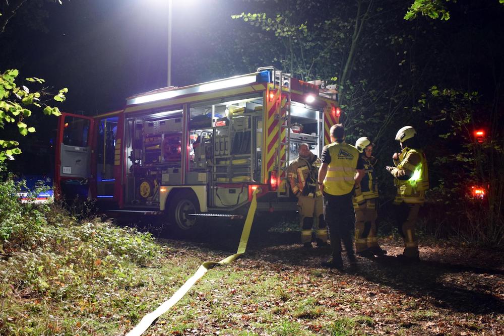 „Mitglieder einer Jugendgruppe befinden sich im Rahmen eines Ausflugs mit ihren Betreuern in einem Wald in der Hoetmarer Dorfbauerschaft und beabsichtigen zu Grillen, als es plötzlich zu einer Verpuffung kommt. Es entsteht ein Brand, die Jugendlichen flüchten in Panik.“ So der Grundsachverhalt, welchen Einsatzleiter Carsten Recker vom Löschzug Hoetmar durch den Übungsleiter André Füllenkemper, gleichzeitig Gruppenführer beim Löschzug Hoetmar, übermittelt bekommt. Sofort machen sich die Mitglieder Feuerwehr auf den Weg zur Unglücksstelle. Hier erwartete die Einsatzkräfte das angekündigte Szenario mit seinen vielen Herausforderungen: das Löschen der Brandstelle, die Sicherung der herumliegenden Gasflaschen, das Ausleuchten des Unglücksorts und natürlich die Suche nach den vermissten Jugendlichen und ihren Betreuern. Die Vielzahl der Aufgaben ließ den Einsatzleiter, trotz einer Anzahl von immerhin 40 Einsatzkräften, an seine personellen Grenzen stoßen, weshalb er für die Unterstützung die Einsatzkräfte des THW Ortsverbandes Warendorf anforderte, welches mit 21 Einsatzkräften anrückte. Ihre Aufgabe war zunächst die Einrichtung einer Betreuungsstelle für die Vermissten auf einer nahegelegenen Wiese und der notwendigen Beleuchtung. Die Betreuung der Geretteten übernahmen Einsatzkräfte der Feuerwehr. Da bereits während der Aufbauarbeiten der Betreuungsstelle die ersten Gefundenen zugeführt wurden, hatten diese direkt die Gelegenheit auch mal den Einsatzkräften des THW über die Schulter zu schauen, waren die zu suchenden Jugendlichen doch allesamt Mitglieder der hiesigen Kinderfeuerwehr. Aber auch der Drohnentrupp des THW Ortsverbandes Oelde war durch den Einsatzleiter angefordert worden und unterstützte mit zwei Einsatzkräften bei der Suche nach den Vermissten. Die Warendorfer THWler konnten nach Erfüllung ihrer ersten Aufgaben ebenfalls bei der Vermisstensuche unterstützen. Aufgrund der Vielzahl der eingesetzten Einsatzkräfte und deren professionellen und gut koordinierten Vorgehen konnten die vermissten 19 Jugendlichen, allesamt Mitglieder der Kinderfeuerwehr, und ihre sieben Betreuer relativ schnell gefunden werden. Besonderheit in dieser Übungslage war die gemeinsame Führungsgruppe aus Feuerwehr und THW im Zugtrupp-Fahrzeug des THW Warendorf. Im Realeinsatz üblicherweise räumlich getrennt arbeitend, jede Einsatzorganisation in ihrem eigenen Führungsfahrzeug, war die Zusammenlegung der Einheiten aufgrund eines Fahrzeugdefekts erfolgt. Diese Zusammenlegung wurde als durchaus positiv bewertet. Konnte man sich so nicht nur gegenseitig über die Schulter schauen, sondern profitierte direkt durch die kurzen Kommunikationswege.