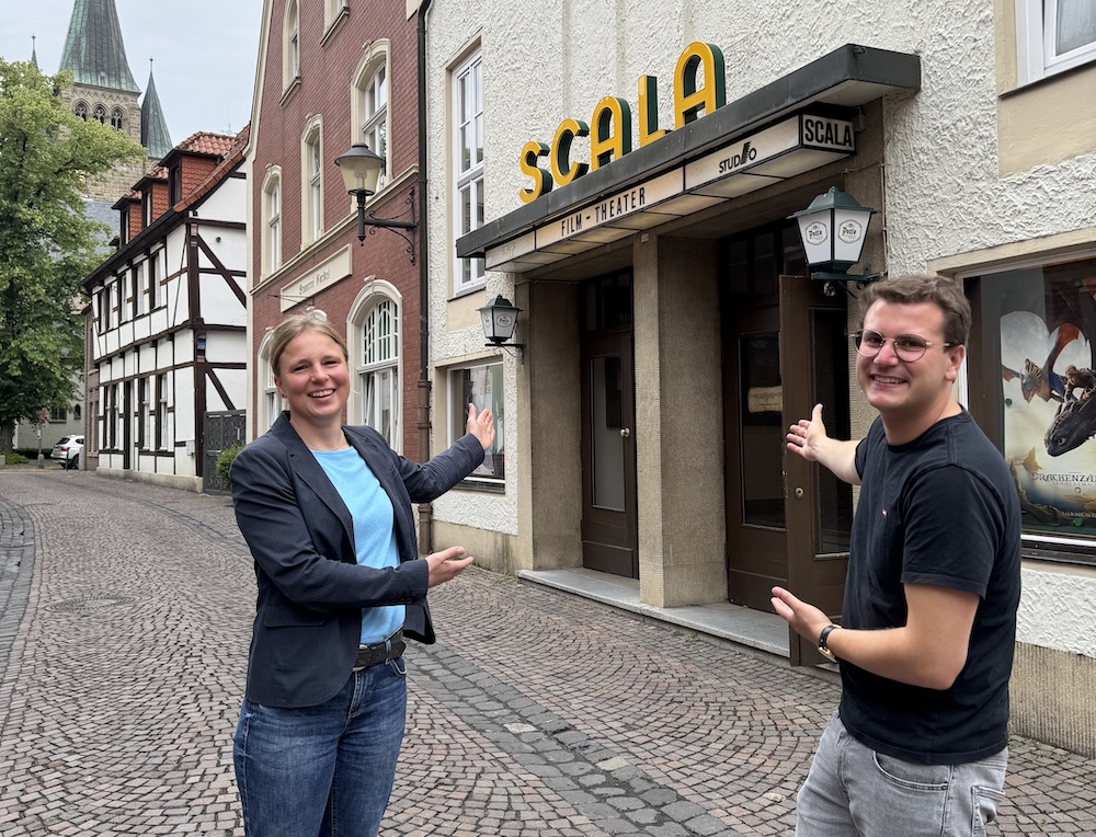 Auf dem Bild sind Dr. Mareike Beer von der Volkshochschule und Johannes Austermann vom SCALA Filmtheater zu sehen, die gemeinsam die Vorstellung organisieren. Dr. Mareike Beer betont: „Es ist wichtig, dass wir solche Filme zeigen, um das Bewusstsein für unsere demokratischen Werte zu schärfen.“ Johannes Austermann ergänzt: „Film ist ein kraftvolles Medium, das uns nicht nur unterhält, sondern auch zum Nachdenken anregt und zur Diskussion anregt.“