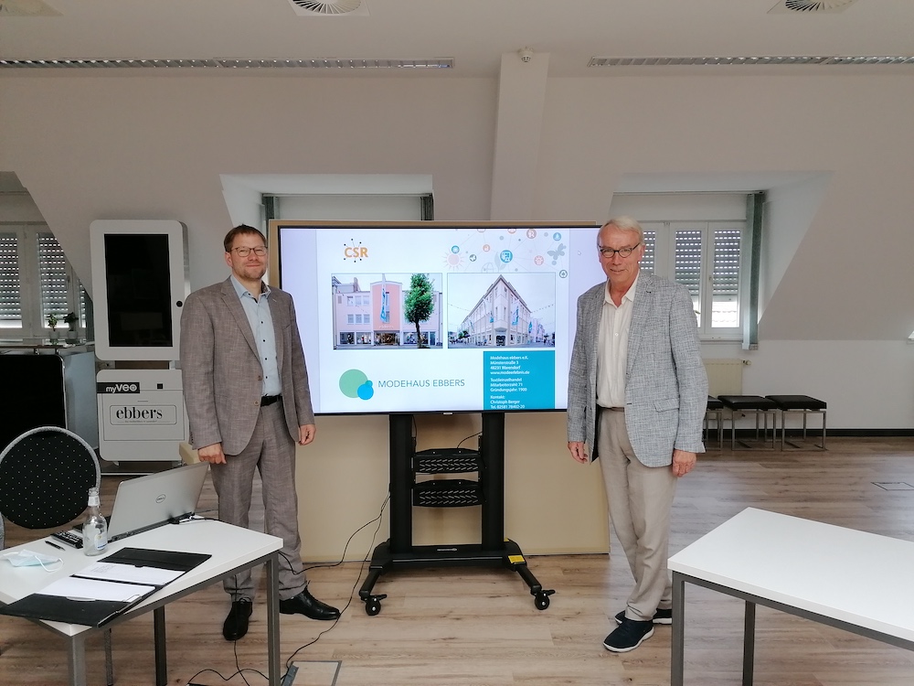 Gesellschaftliche Verantwortung sowie das Bestreben, das Wirtschaften auf nachhaltiges Bestehen am Markt auszurichten, sollte für Einzelhändler heutzutage – statt kurzfristiges Gewinnstreben – Hauptziel ihres Denken und Handels sein. Das war die Botschaft von Christoph Berger, dem Inhaber des traditionsreichen Warendorfer Modeerlebnishauses ebbers, als der SPD-Bundestagsabgeordnete Bernhard Daldrup zu Besuch kamen. Für gesellschaftliche Verantwortung wurde das Modehaus ebbers auch vom CSR-Kompetenzzentrum Münsterland mit dem CSR-Preis ausgezeichnet. CSR steht dabei für Corporate Social Responsibility und meint die gesellschaftliche Verantwortung von Unternehmen über die gesetzliche Anforderung hinaus.