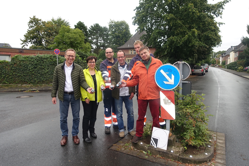 Nachdem der Projektleiter seitens der Fördergemeinschaft, Jan Albers, aus den vielfältigen Angeboten dasjenige ausgewählt hatte, das den Vorstellungen am besten entsprach, wurden die Reflektoren bestellt und vom Baubetriebshof eingebaut. Der volle Effekt dieser Maßnahme zeigt sich am besten bei einer Fahrt durch den Diekamp oder die Düsternstraße nach Einbruch der Dunkelheit.