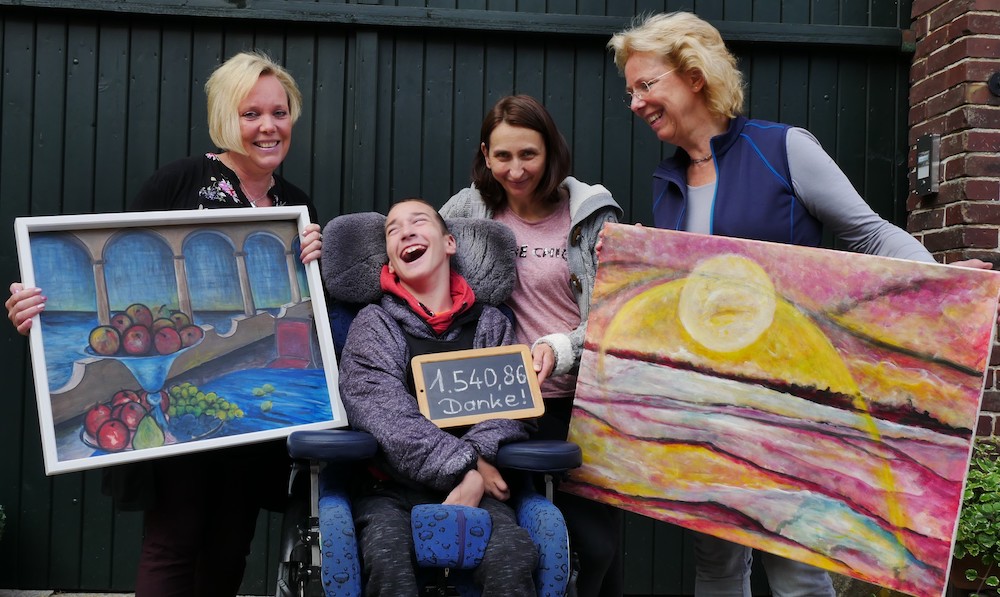 Max strahlt über das ganze Gesicht und dazu hat er auch allen Grund. Bei der Aktion der Schwestern Maren Zitlau und Birte Plautz samt ihren Familien auf dem Neuenbrocks Hof in Ostbevern zugunsten der Königskinder kamen insgesamt 1540,86 Euro zusammen. Die Werke des verstorbenen Vaters Hans Rehhoff konnten für eine beliebige Summe erworben werden. Max und seine Mutter Agnieszka Götting nahmen anstelle von 50 Familien, die derzeit von den Königskindern begleitet werden, die Spende entgegen. Die Königskinder begleiten in Münster und dem Umland Familien, in denen ein Kind oder Jugendlicher lebensverkürzend erkrankt ist, so dass sich alle Akteure über den großen Erfolg freuen.