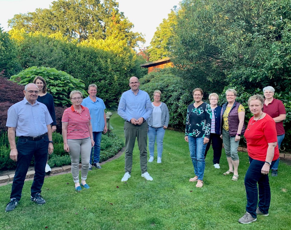 Der Vorstand der Blumen und Gartenfreunde traf sich am Dienstag mit Bürgermeisterkandidat Johannes Philipper bei Familie Möllmann im Waterort zu einem gemeinsamen Austausch. Philipper stellte der Runde den aktuellen Planungsstand für die Umgestaltung des Stadtparks in Sassenberg vor. „Der Park soll deutlich offener und heller werden und mehr für Veranstaltungen genutzt werden können. Entsprechend wird es in Richtung der Hessel einen Platz für eine mobile Bühne geben.“, erklärte er. Die Blumen und Gartenfreunde begrüßen die Umgestaltung. Dennoch gibt es Bedenken im Hinblick auf die Pflege. „Leider ist die Grünpflege der Stadt nicht ideal und es wäre schade, wenn ein neugestalteter Park gerade zu Beginn nicht ordnungsgemäß gepflegt werden würde.“, machte Alexandra Kruse deutlich. Agnes Wittwer schlug vor die Pflege des neuen Stadtparks zunächst in die Hände eines Landschaftsgärtners zu legen, was auf große Zustimmung in der Runde traf.