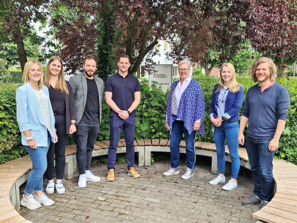 (v.l.): Nadja Tschorn, Julia Denecke, Tim Ansorge, Piotr Piekut (alle Barmer), Maria Rabert (LVM), Anna-Lena Freese (Technotrans) und David Feldkämper (Mariengymnasium).
