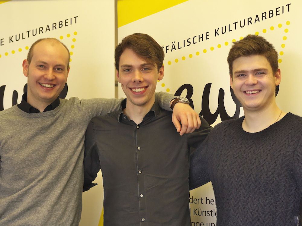 Der Saxophonist Lukas Stappenbeck aus Bocholt, der Bariton Stefan Astahkov aus Detmold und der Kontrabassist Matthias Solle aus Sassenberg bekommen je einen GWK-Musikpreis 2018