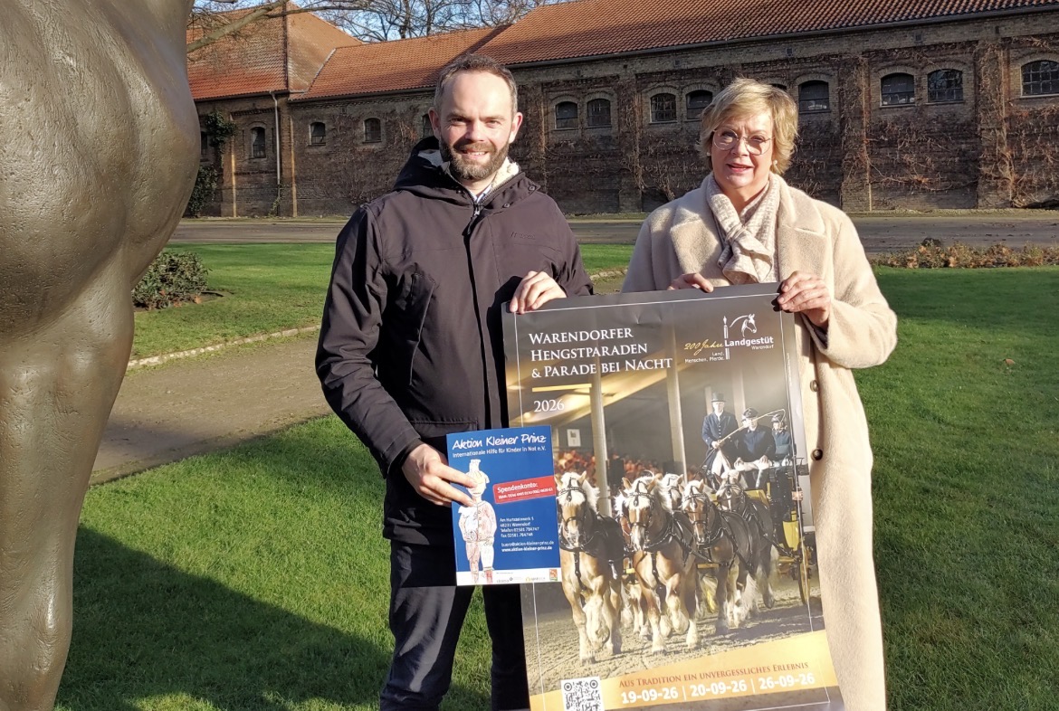 Das NRW Landgestüt und die Aktion Kleiner Prinz, Internationale Hilfe für Kinder in Not e.V., das sind zwei Warendorfer Institutionen, die man kennt. Beide sind, wenn auch in unterschiedlicher Weise, Aushängeschilder der Stadt.Gemeinsam machen sie sich stark für einen guten Zweck. So geschieht es seit nunmehr 15 Jahren bei den Warendorfer Hengstparaden. Dort finden alljährlich Verlosungen im Publikum statt, deren Einnahmen Projekten der Kinderhilfsorganisation zugute kommen. In diesem Jahr sind es stattliche 2.700 Euro, die Gestütsleiter Dr. Felix Austermann an Sylvia Oertker, die Vorsitzende der Aktion Kleiner Prinz, übergeben konnte.