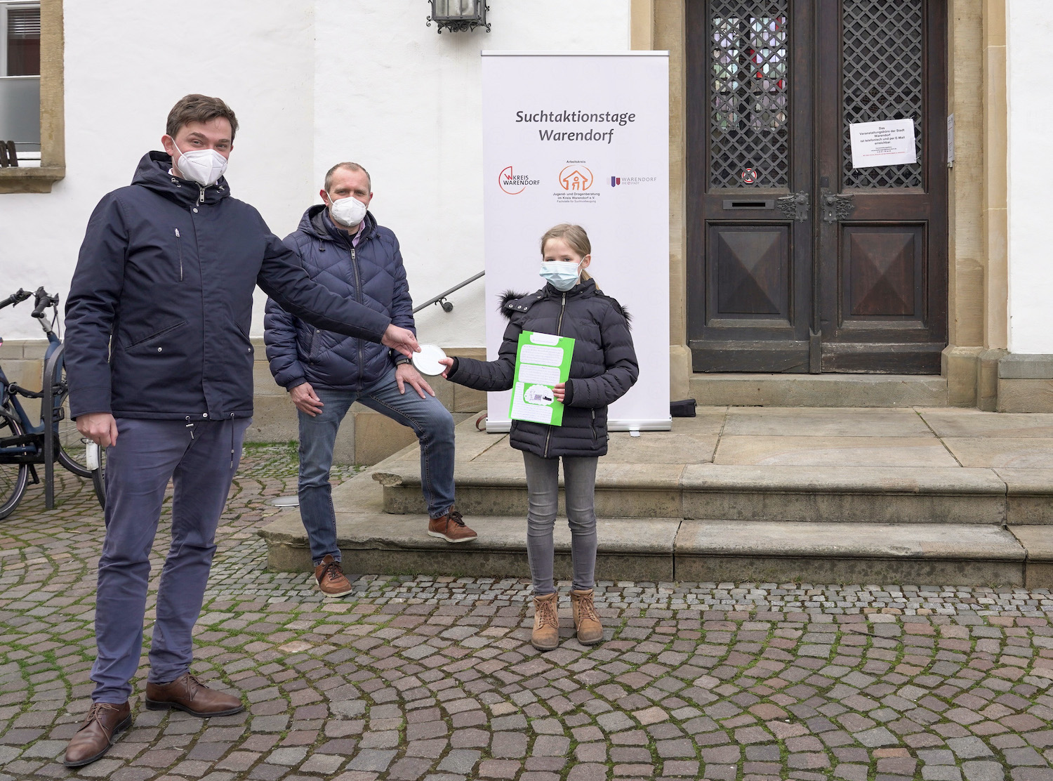 Das Foto zeigt Bürgermeister Peter Horstmann (l.), Stadtjugendpfleger Ansgar Westmark und Pauline Behrens, die mit Ihrer Familie an dem Handyfreien Wochenende teilgenommen hat. (Foto: Stadt Warendorf)