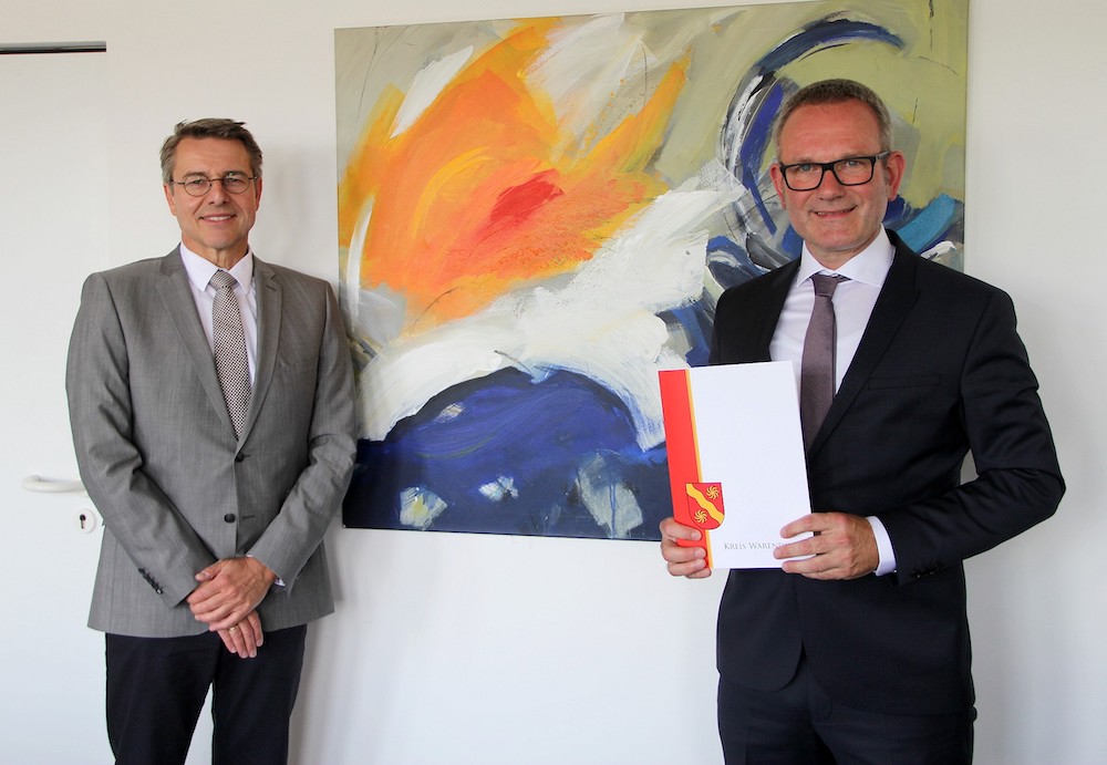 Harald Loermann feierte sein 25-jähriges Dienstjubiläum. Kreisdirektor Dr. Stefan Funke gratulierte dazu herzlich. – Foto: Kreis Warendorf