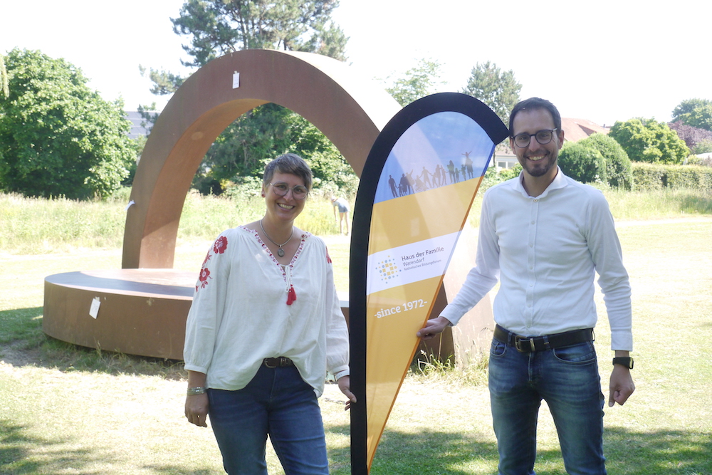 Isabella Matic und Benedikt Patzelt freuen sich auf viele Interessenten bei den Jubiläumsangeboten des Warendorfer Haus der Familie