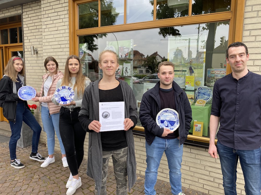 Entstanden sind altherkömmlich anmutende Zierteller, die strahlen, wie es die niederländische Keramiktradition verlangt, im Delfter Blau über den Tellerrand hinaus. Die Schülerarbeiten vermitteln dem Betrachter eine klassische Komposition, modern interpretiert im angestaubten Charakter und sind seit dieser Woche in den Schaufenstern der Buchhandlung Ebbeke öffentlich ausgestellt.