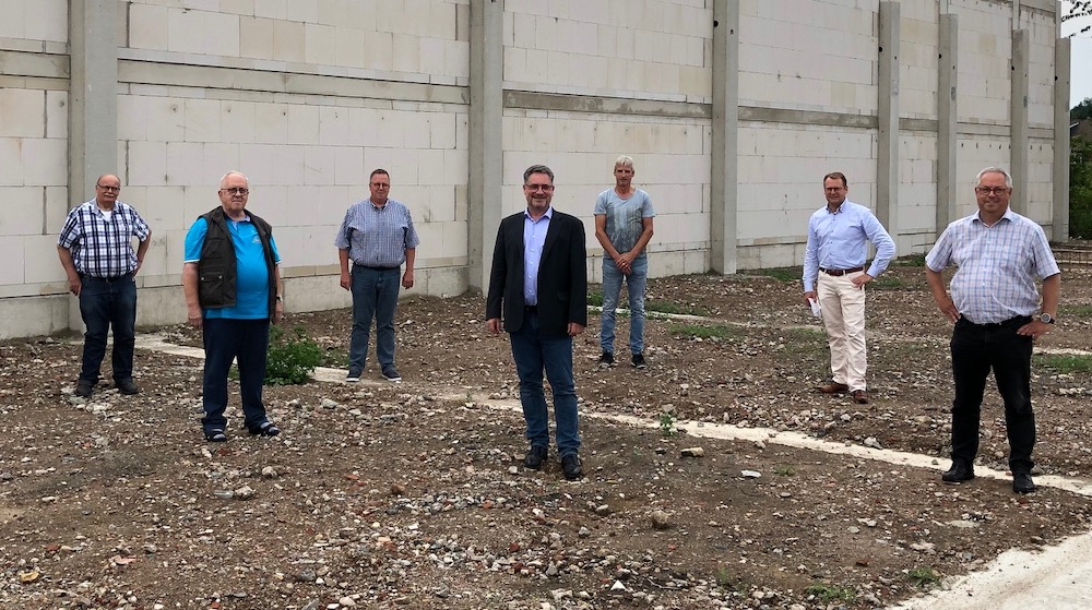 Auf dem Gelände des städtischen Bauhofs entsteht derzeit eine Lagerhalle für die Marienbögen. Gemeinsam mit Bürgermeister Axel Linke und Kreisdechant Peter Lenfers machten sich die Vertreter der Bogengemeinschaften, des Schützenvereins und der Verein zur Förderung der Pferdeprozession ein Bild vom Fortschritt der Bauarbeiten.
