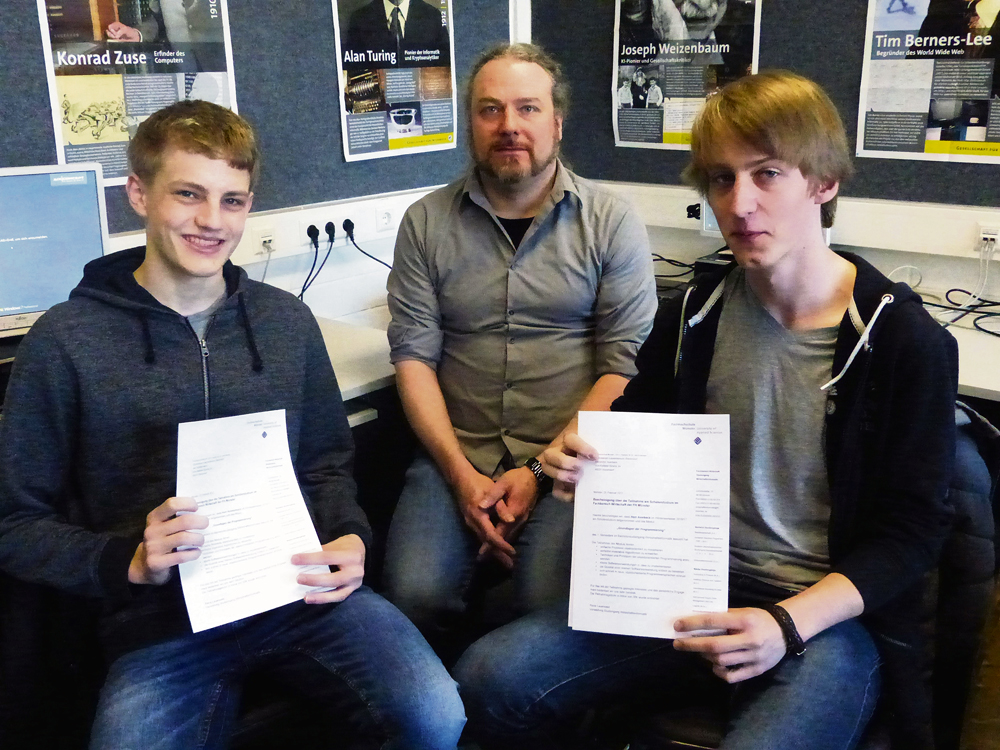 Alexander Averbeck (r.), Informatiklehrer Henning Vaut (m.) und Jan Holstermann (l.)