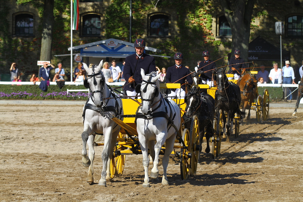 Besonderer Beliebtheit erfreuen sich zum einen die Schaubilder mit den schwergewichtigen Rheinisch-Deutschen Kaltblütern. Unter anderem präsentieren sie sich in der Sulky-Quadrille, nebeneinander geführt in Kaltblutkoppeln, oder im imposanten Achtspänner. Auch die Warmbluthengste haben ihre großen Auftritte beispielsweise in anspruchsvollen Dressurquadrillen, angespannt vor der Kutsche als Vier- oder Zweispänner und den römischen Streitwägen, oder als Aktionstraber und in der Springquadrille.
