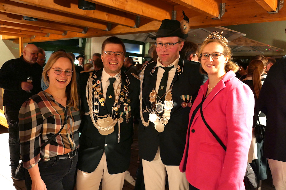 Das amtierende Königspaar Peter Stratmann und Königin Nadine (rechts) freute sich über einen geselligen Abend mit zahlreichen bekannten Gesichtern, darunter die amtierenden Sassenberger Majestäten Fabian und Corinne Lackamp