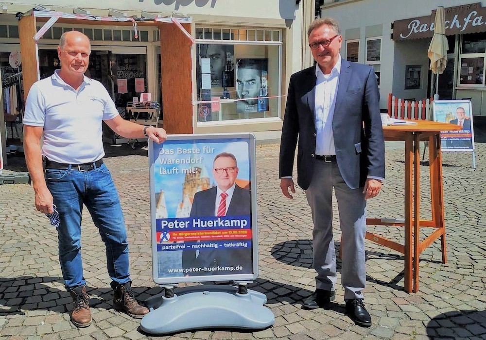 Hermann-Josef Becker (ehrenamtlich engagierter Bürger) suchte das Gespräch mit dem parteifreien Bürgermeisterkandidaten Peter Huerkamp.