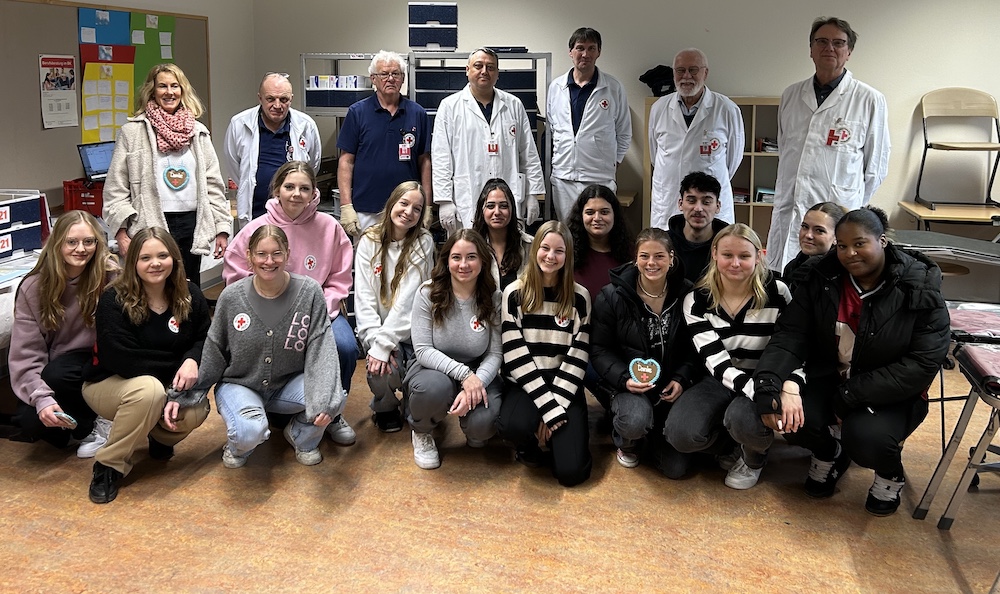 In der Oberstufe der Fachoberschule für Gesundheit und Soziales am Paul-Spiegel-Berufskolleg Warendorf hat Projektarbeit einen hohen Stellenwert. Die Klasse FOSO2 hat mit der Unterstützung von Fachlehrerin Barbara Liemke-Waltz im Rahmen eines Projekts den Blutspendeinfotag und den Blutspendetag am Berufskolleg organisiert. Die Schülerinnen und Schüler unterstützten das Blutspendeteam des DRK bei der Durchführung der Blutspendeaktion. Beim Infotag informierte die Klasse über die Notwendigkeit der Blutspende und deren Ablauf. Täglich werden allein in Deutschland ca. 15.000 Blutspenden und rund 5000 Plasmaspenden benötigt. Bei vielen Operationen oder bei Krebstherapien muss Blut in ausreichender Menge in den Kliniken vorgehalten werden. Jeder Mensch kann beispielsweise aufgrund eines Unfalls oder einer schweren Erkrankung plötzlich in die Lage geraten, Bluttransfusionen zu benötigen. Einige Unfallopfer sind nach Angaben des Instituts für Transformationsmedizin der Uniklinik Aachen auf 50 oder mehr Blutkonserven angewiesen, um zu überleben.