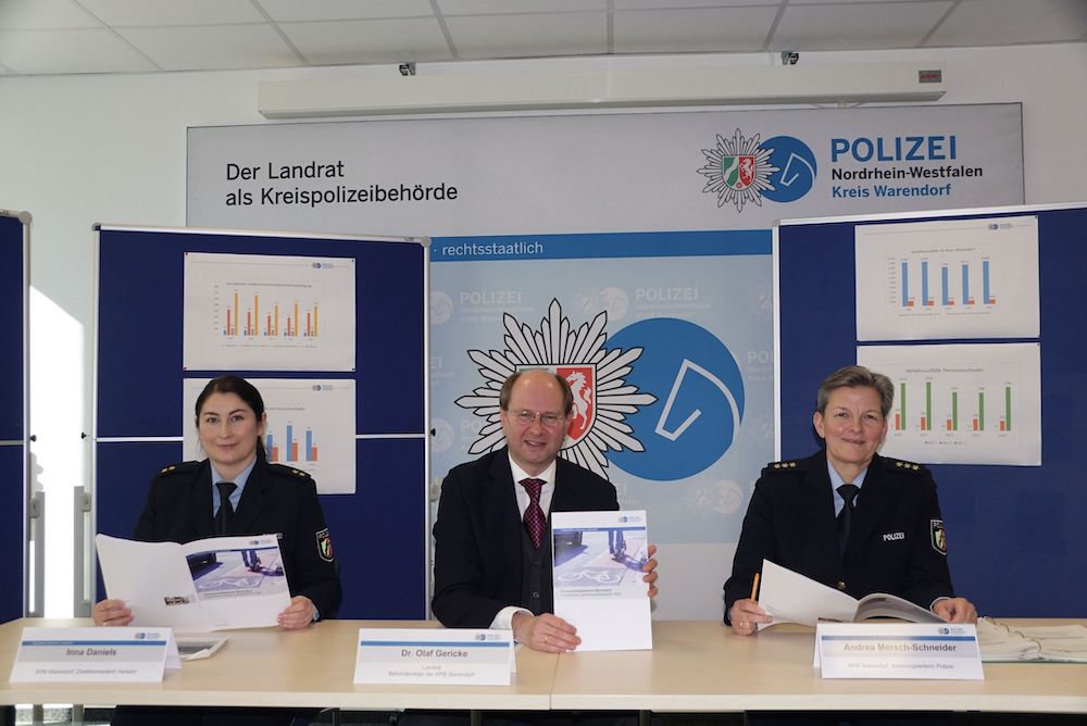 Ein fester Eintrag im Jahreskalender ist die Vorstellung der Kriminal- sowie der Verkehrsunfallstatistik der Polizeibehörden. Insgesamt sind in beiden Bereichen ermutigende Zahlen zu erkennen. Aus ihnen lässt sich ablesen, dass der Kreis Warendorf sowohl im Bereich der Kriminalität als auch bei der Verkehrssicherheit gut abschneidet. Er hat die geringste Kriminalitätsbelastung im Münsterland und der Vergleichsgruppe, und auch bei den Unfällen mit Personenschaden liegt er deutlich unter dem Landesdurchschnitt.