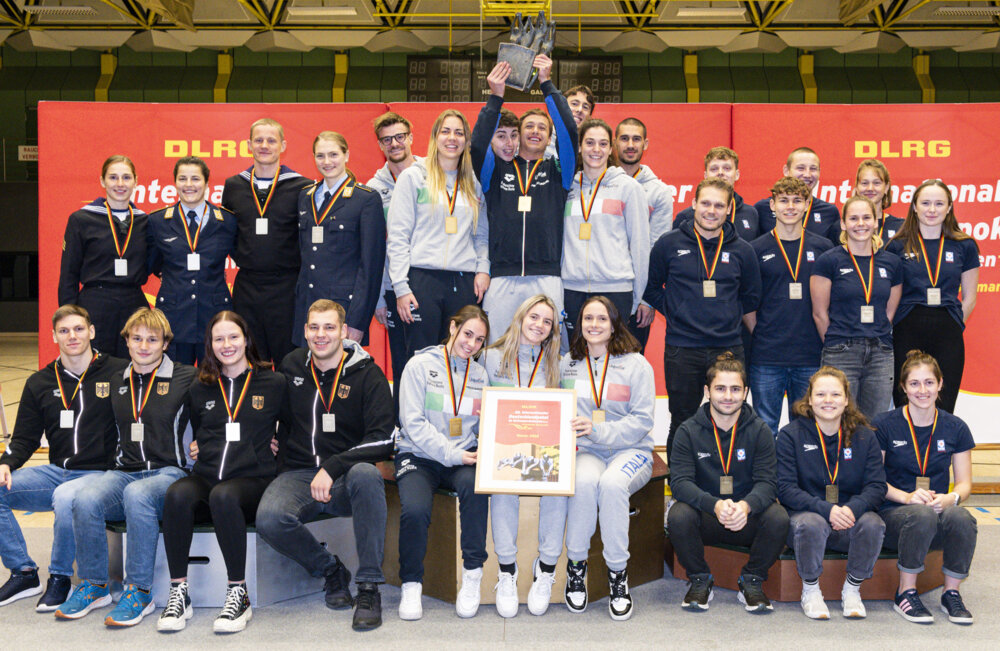 Bad Nenndorf/Warendorf. Nach zwei Wettkampftagen mit rund 150 Läufen in der Schwimmhalle der Bundeswehr-Sportschule in Warendorf steht fest: Italien gewinnt den 28. Internationalen Deutschlandpokal im Rettungsschwimmen. Den Südeuropäern folgen auf den nächsten Rängen das Nationalteam der gastgebenden Deutschen Lebens-Rettungs-Gesellschaft (DLRG) und das aus der Schweiz.