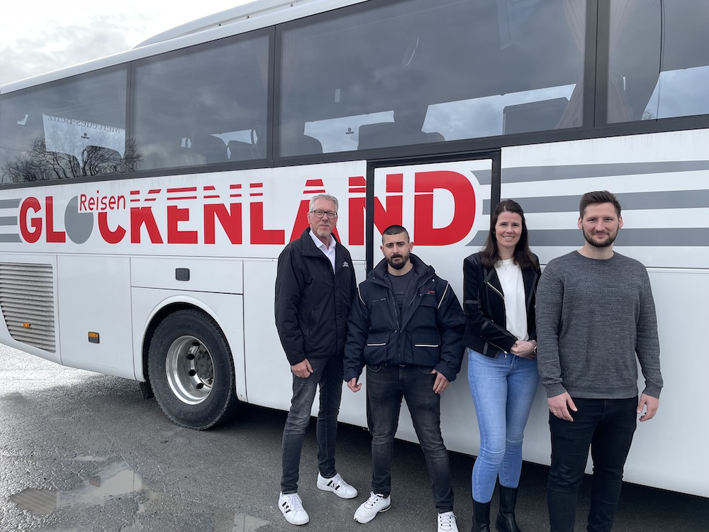 Einer Arbeitsaufnahme als Busfahrer stand nun nichts mehr im Wege und Hamza bewarb sich bei den Busunternehmen in der Region. Auch beim Einstieg in die Festanstellung unterstützte ihn seine Ansprechpartnerin aus dem Jobcenter. Sarah Kersting bot Betriebsleiter Andreas Thülig von der Firma Glockenland nach erfolgreichem Praktikum einen befristeten Zuschuss zum Gehalt an, um den Einarbeitungsaufwand abzufedern – schließlich fehlte es dem „Fahranfänger“ noch an Berufserfahrung. Seit Jahresanfang arbeitet der junge Syrer nun zur Zufriedenheit aller Beteiligter bei der Firma Glockenland.